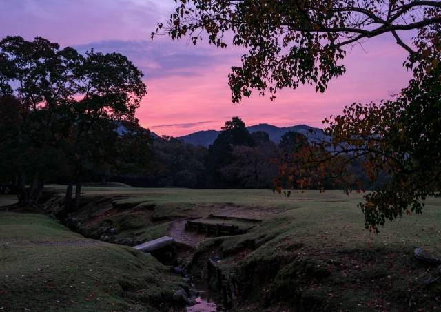 ・この歌の前に載っている長歌(0045番歌)の題詞には「軽皇子(かるのみこ)、安騎(あき)の野に宿る時、柿本朝臣人麻呂(かきのもとのあそんひとまろ)の作る歌」とあります。長歌と他の反歌には、軽皇子(かるのみこ)と一行が野営し、亡き草壁皇子(くさかべのみこ、軽皇子の父)の昔をしのぶ様子が描かれています。